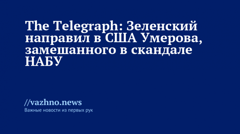 Президент Украины Владимир Зеленский направил в США секретаря Совета национальной безопасности и обороны Рустема Умерова, который фигурирует в коррупционном скандале. Об этом 30 ноября сообщила газета The Telegraph.«Новый главный переговорщик Зеленского оказался вовлеченным в тот же коррупционный скандал, который привел к отставке Андрея Ермака, предыдущего главы киевской делегации, — говорится в публикации. Ранее в этот же день сообщалось, что Умеров 1 декабря должен встретиться с Зеленским в Париже, чтобы доложить о результатах прошедших в США переговорах. Отмечалось, что переговорщики США и Украины на встрече во Флориде, состоявшейся накануне, сосредоточились на определении фактической границы с Россией в рамках соглашения.Переговоры украинской и американской делегаций и в США прошла в личном гольф-клубе спецпредставителя президента США Стивена Уиткоффа. Газета The Wall Street Journal отмечала возможность обсуждения в ходе переговоров во Флориде обмена территориями и другие нерешенные вопросы.Впоследствии госсекретарь США Марко Рубио сообщил о продуктивности прошедших переговоров. При этом он добавил, что они требуют еще большей работы. Рубио также подчеркнул необходимость долгосрочных гарантий безопасности для Украины и сообщил, что переговоры с российской стороной должны будут стать частью «уравнения» по урегулированию кризиса, в связи с чем Уиткофф поедет в Москву.Все важные новости — в канале «Известия» в мессенджере МАХ