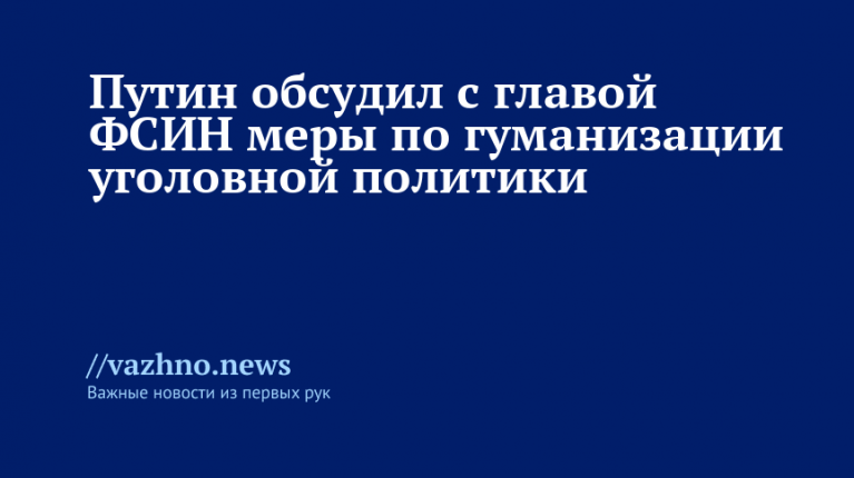 Президент России Владимир Путин обсудил с главой ФСИН Аркадием Гостевым меры по гуманизации уголовной политики. Об этом 1 декабря сообщили в пресс-службе Кремля.