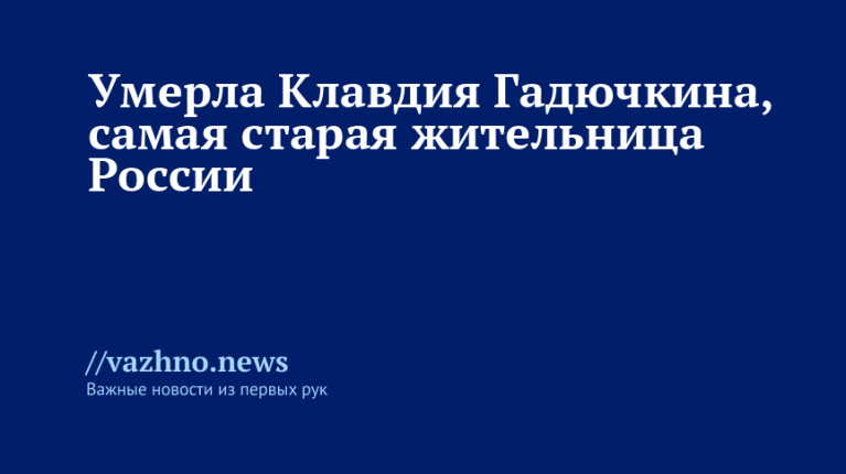 Умерла Клавдия Гадючкина, самая старая жительница России