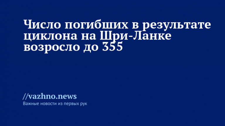 До 355 увеличилось число погибших в результате тропического шторма «Дитва» на Шри-Ланке, 366 человек числятся пропавшими без вести. Об этом 1 декабря сообщило агентство Reuters.