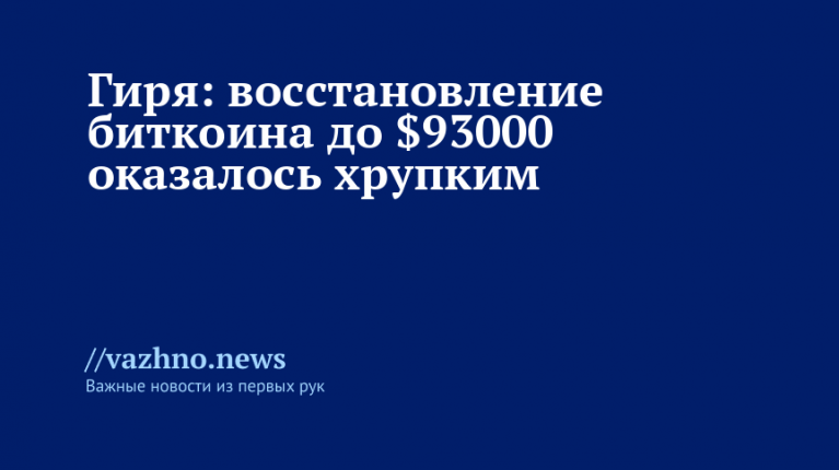 После ноябрьского снижение до $80600 биткоин сумел отыграть почти всю потерянную территорию, поднявшись в район $93000, однако этот отскок оказался хрупким. Об этом 1 декабря «Известиям» рассказал владелец и генеральный директор компании GIS Mining Василий Гиря.