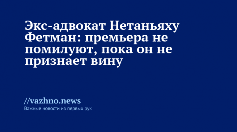 Президент Израиля Ицхак Герцог не может вынести решение о помиловании премьер-министра Израиля Биньямина Нетаньяху по делу о коррупции без признания вины со стороны самого Нетаньяху. Об этом 1 декабря заявил его бывший адвокат Мика Фетман.