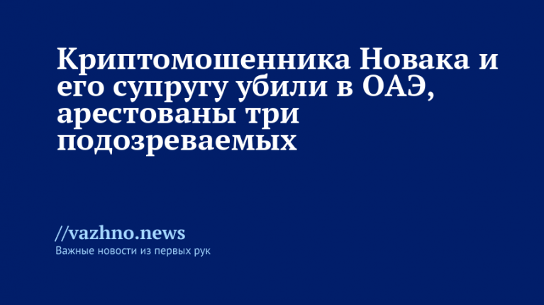 Криптомошенника Новака и его супругу убили в ОАЭ, арестованы три подозреваемых