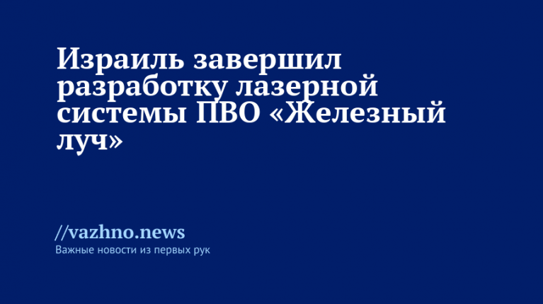 Израиль завершил разработку своей передовой системы противовоздушной обороны (ПВО) «Железный луч» (Iron Beam), работающей с внедрением лазерных технологий. Об этом 1 декабря сообщил начальник Управления оборонных исследований и разработок минобороны страны Даниэль Голд.