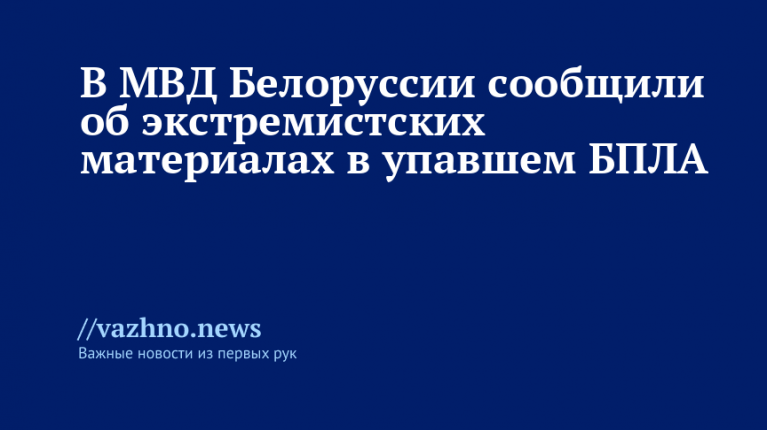 В упавшем в Гродно беспилотном летательном аппарате (БПЛА) содержатся экстремистские материалы. Об этом 1 декабря сообщили в Telegram-канале МВД Белоруссии.