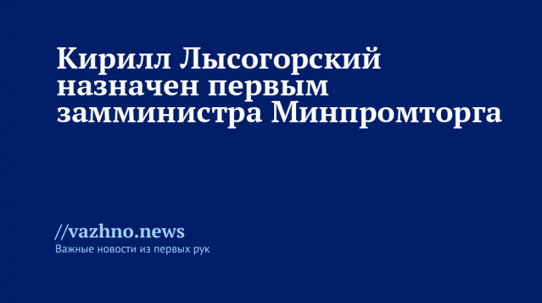 «Назначить Лысогорского Кирилла Алексеевича первым заместителем министра промышленности и торговли Российской Федерации, освободив его от занимаемой должности», — говорится в тексте документа.