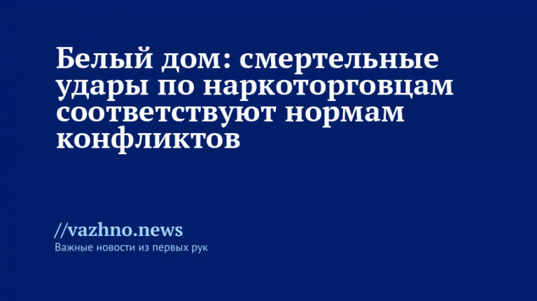 Пресс-секретарь Белого дома Кэролайн Ливитт 1 декабря заявила, что применение летального вооружения Соединенных Штатов против наркоторговцев соответствует нормам международного права, регулирующего ведение вооруженных конфликтов. Заявление прозвучало в ответ на вопрос, приказывал ли министр обороны Пит Хегсет «добивать» наркоторговцев, подчеркнула Ливитт.
