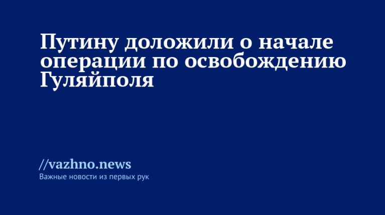 «Также Андрей Иванаев доложил о выходе группировки к реке Гайчур и начале операции по освобождению города Гуляйполе Запорожской области подразделениями 5-й общевойсковой армии. В настоящее время подразделения этой армии ведут уличные бои в северо-восточной части города», — сказал он.