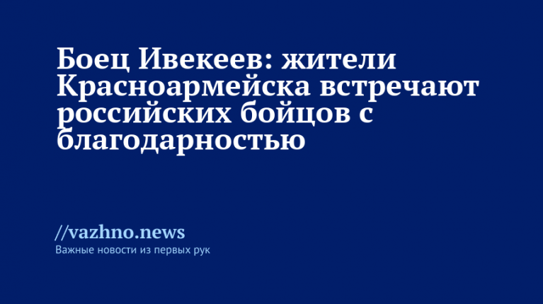 «Мирные жители рады, что русская армия освободила (Красноармейск. — Ред.). И помогают, они нам помогают, мы им помогаем. Они очень сильно рады», — сказал Ивекеев в видеообращении, предоставленному ТАСС.