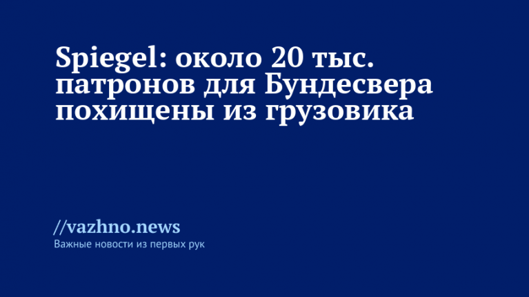 Примерно 20 тыс. патронов, которые предназначались для Бундесвера, были украдены в Германии из гражданского грузового автомобиля. Об этом 1 декабря написала газета Spiegel, ссылаясь на источники в министерстве.