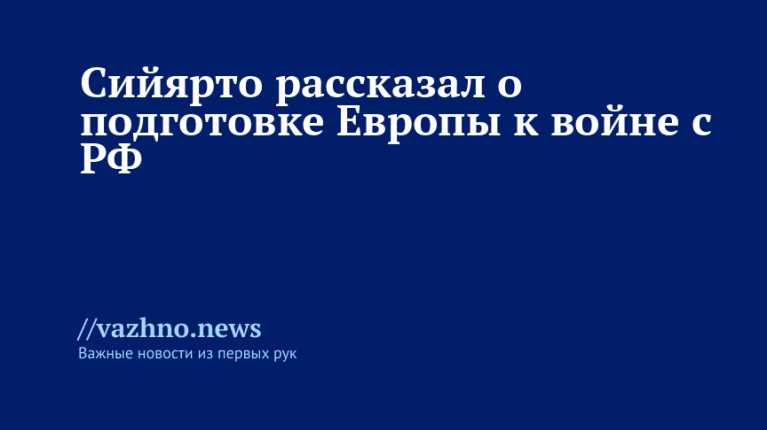 «Европа в настоящее время готовится к конфликту против России, и ставкой в следующем периоде станет то, удастся ли предотвратить полное уничтожение всего континента», — сказал Сийярто, его слова приводит «РИА Новости» со ссылкой на агентство MTI.