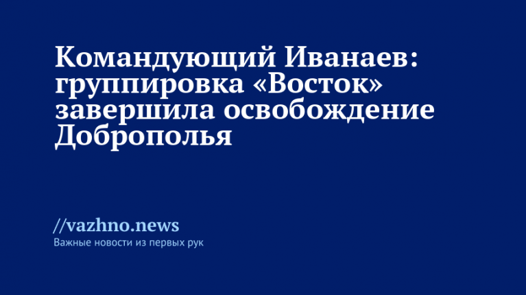 Иванаев: группировка «Восток» завершила освобождение Доброполья