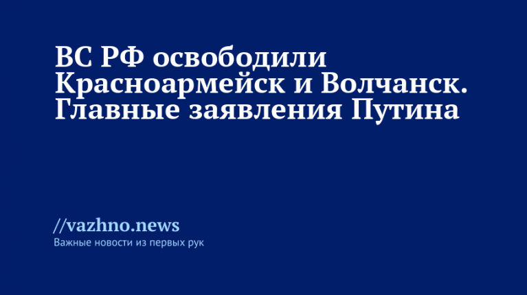 Путин: ВС РФ освободили Красноармейск и Волчанск — главные заявления