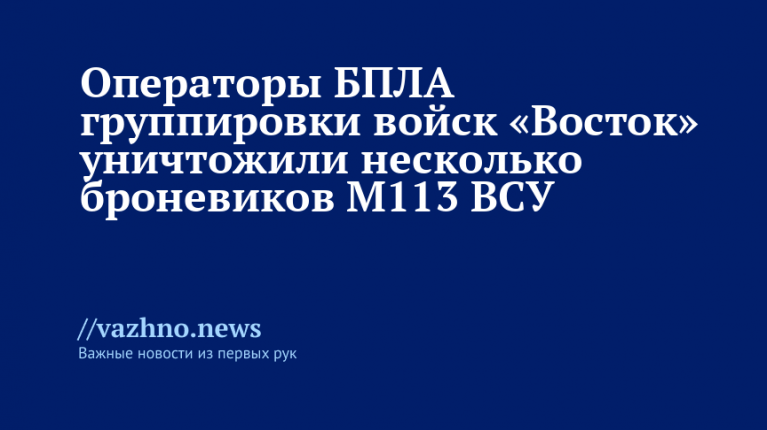 Операторы БПЛА группировки «Восток» уничтожили несколько М113 ВСУ
