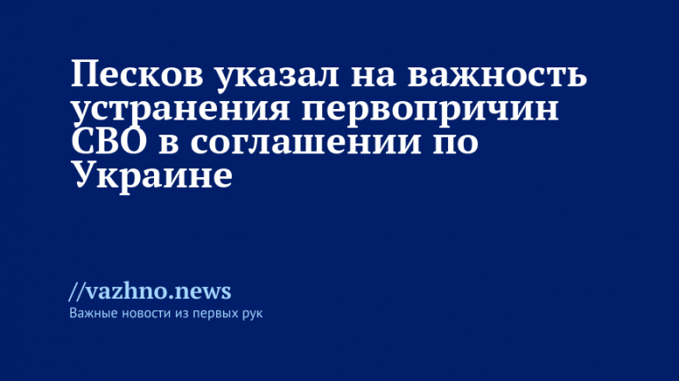 По словам официального представителя Кремля Дмитрия Пескова, 2 декабря соглашение по урегулированию украинского кризиса должно предусматривать устранение первопричин специальной военной операции (СВО).
