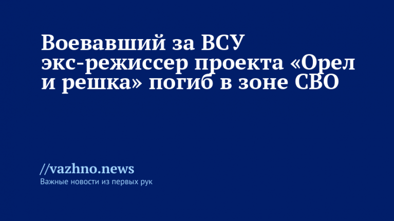 Василий Хомко, бывший режиссер украинского телешоу «Орел и решка», который воевал в рядах Вооруженных сил Украины (ВСУ), погиб на фронте. Сообщение об этом 2 декабря сделали его жена Галина Спивак и сестра Алена Хомко.
