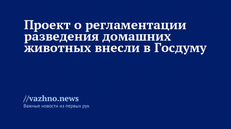 В Государственную Думу (ГД) внесен межфракционный законопроект, целью которого является упорядочение деятельности по разведению домашних животных. Текст инициативы опубликован в думской электронной базе.
