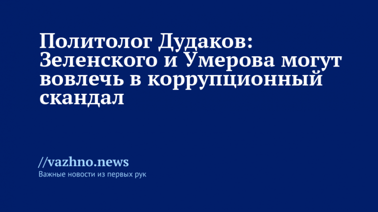 Политолог-американист Малек Дудаков заявил, что глава киевского режима Владимир Зеленский и секретарь Совета национальной безопасности и обороны Украины Рустем Умеров могут оказаться замешанными в новом крупном коррупционном скандале.