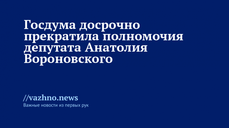 «Считать досрочно прекращенными полномочия депутата Государственной думы Вороновского Анатолия Владимировича, избранного по федеральному избирательному округу в составе федерального списка кандидатов в депутаты Государственной думы, выдвинутого Всероссийской политической партией «Единая Россия», 13 ноября 2025 года на основании его письменного заявления о сложении депутатских полномочий», — сказано в документе.
