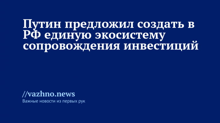 «Предлагаю создать единую экосистему сопровождения инвестиций, чтобы предприниматели, компании могли получать профессиональные консультации, помощь на всем жизненном цикле проекта, от его задумки до реализации», — заявил российский лидер.