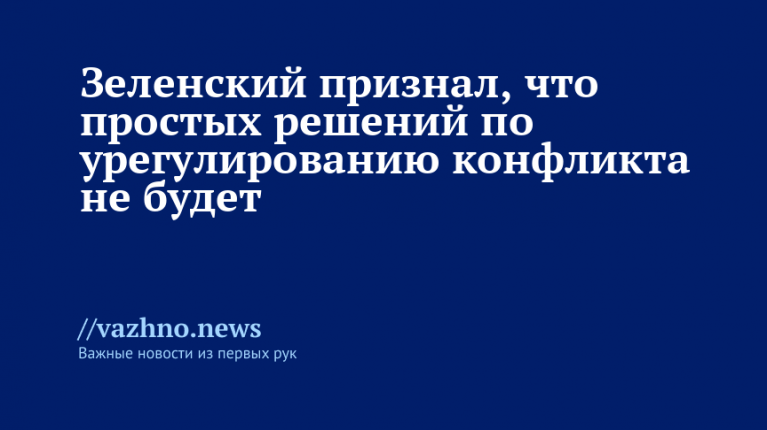 Президент Украины Владимир Зеленский признал, что по вопросу урегулирования конфликта не будут существовать простые варианты решений.