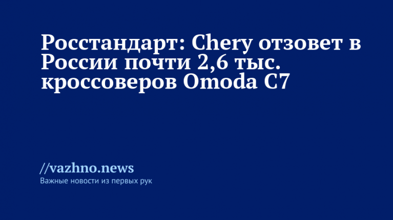 В России компания Chery объявила об отзыве почти 2,6 тыс. кроссоверов Omoda C7. Подробности 2 декабря были опубликованы на официальном сайте Росстандарта.