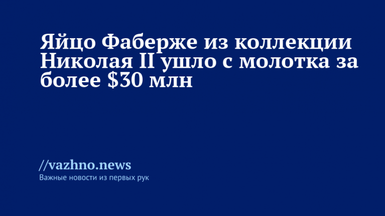 Яйцо Фаберже из коллекции Николая II продано за свыше $30 млн