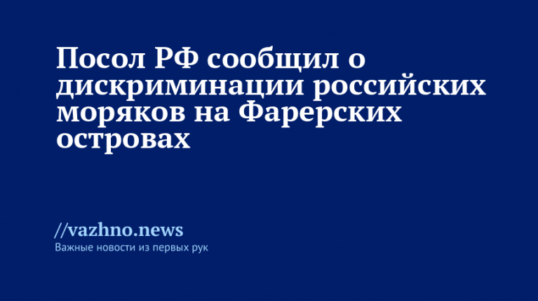 Посол РФ в Дании Владимир Барбин в интервью «Известиям» сообщил, что российские моряки на Фарерских островах сталкиваются с дискриминацией, несмотря на существующее с 1977 года соглашение между Россией и этой автономией.