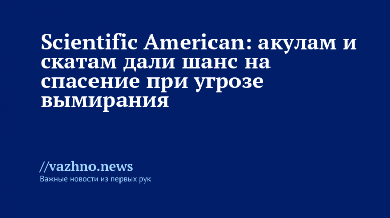 Конвенция о международной торговле исчезающими видами дикой фауны и флоры пересмотрела нормы и усилила мониторинг ряда ключевых видов акул и скатов. Теперь млекопитающие обладают шансом на спасение в условиях угрозы вымирания. Об этом 1 декабря сообщил журнал Scientific American.