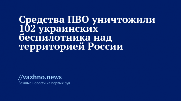 «В течение прошедшей ночи дежурными средствами ПВО перехвачены и уничтожены 102 украинских беспилотных летательных аппарата», — говорится в публикации в Telegram-канале.