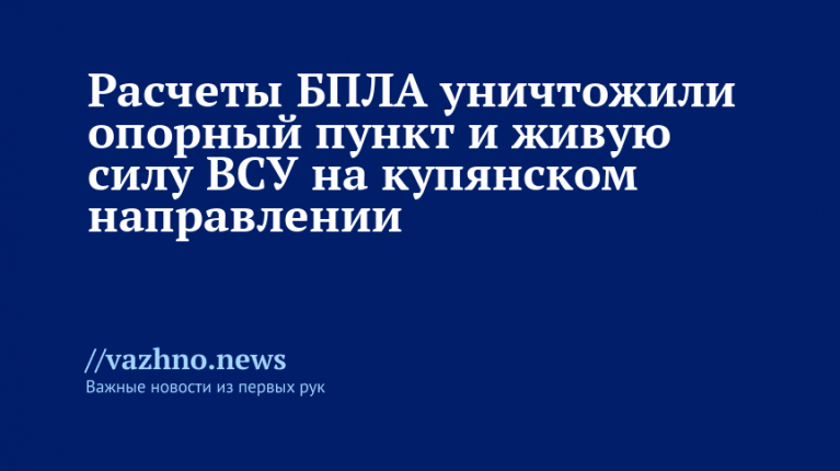 Минобороны РФ 3 декабря сообщило, что расчеты ударных беспилотных летательных аппаратов самолетного типа «Молния» из состава группировки войск «Запад» при выполнении боевых задач на купянском направлении специальной военной операции уничтожили замаскированный опорный пункт и живую силу Вооруженных сил Украины (ВСУ).