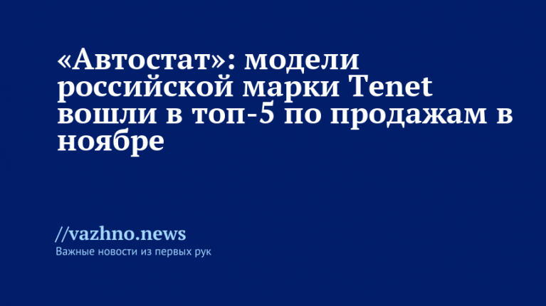 «Автостат»: модели Tenet вошли в топ-5 продаж в ноябре