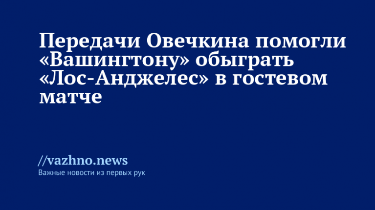 Передачи Овечкина помогли Вашингтону обыграть Лос-Анджелес в гостях