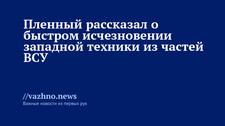 Западная военная техника, которую поставляют Вооруженным силам Украины, не оставалась надолго в подразделениях, хотя регулярные поставки начались с 2022 года. Об этом 3 декабря рассказал украинский военнопленный Сергей Костецкий, который до пленения работал водителем в ВСУ.