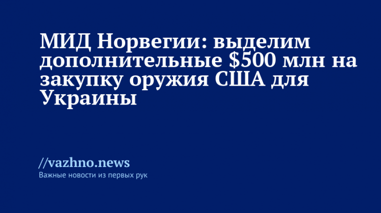 МИД Норвегии: выделим $500 млн на покупку оружия США для Украины