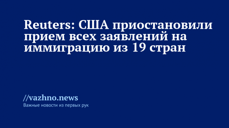 «Администрация [президента США Дональда] Трампа объявила, что приостановила все иммиграционные заявления, включая грин-карту и оформление гражданства США, поданные иммигрантами из 19 стран вне Европы», — говорится в материале.
