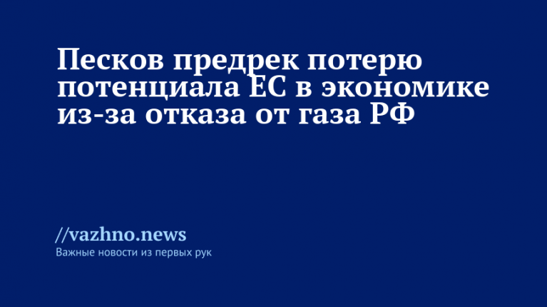Евросоюз (ЕС) может утратить свой ведущий экономический потенциал из‑за отказа от российского газа и окажется в зависимости от более дорогих энергоносителей. Об этом 3 декабря на брифинге сообщил официальный представитель Кремля Дмитрий Песков.