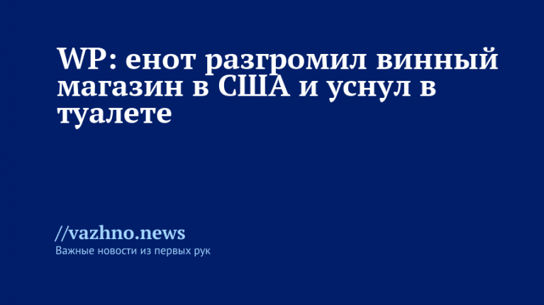Енот пробрался в закрытый винный магазин в штате Вирджиния (США), устроил беспорядок, выпил алкоголь и заснул в служебном туалете. Об этом 3 декабря сообщила газета The Washington Post (WP).