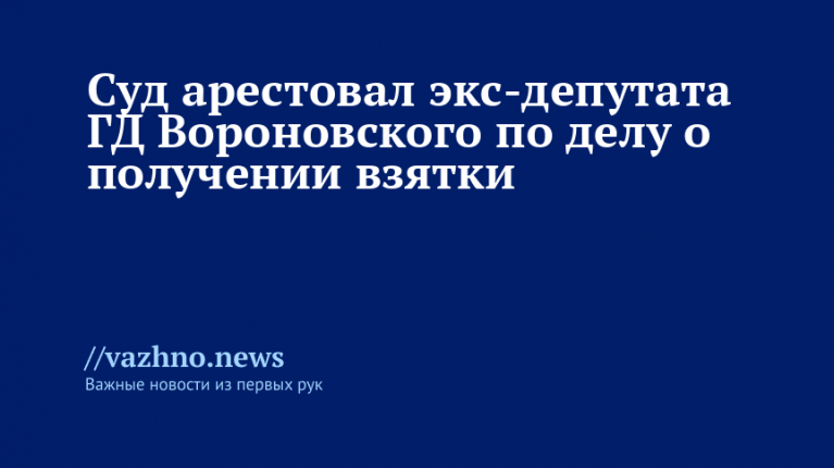 «Постановлением Басманного районного суда города Москвы удовлетворено ходатайство следователя об избрании меры пресечения в виде заключения под стражу в отношении депутата Государственной Думы Федерального Собрания Российской Федерации Анатолия Владимировича Вороновского, обвиняемого в совершении преступления, предусмотренного ч. 6 ст. 290 УК РФ», — указано в Telegram-канале пресс-службы.
