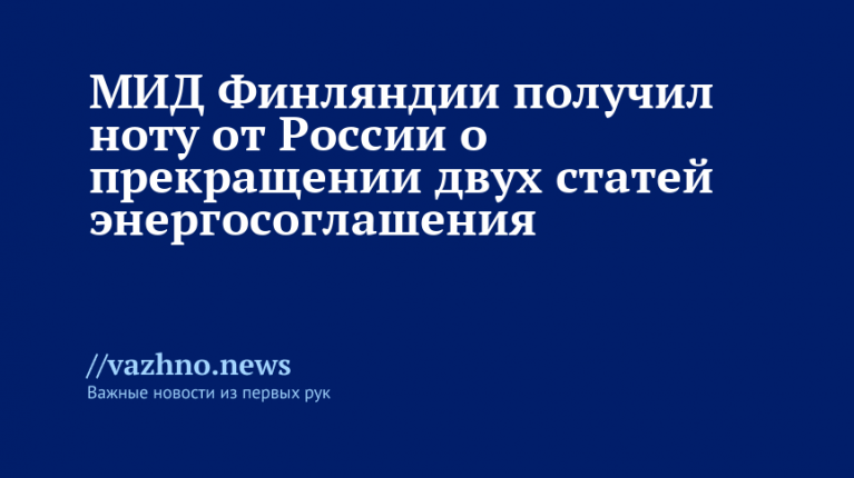 «Министерство иностранных дел Финляндии получило официальную ноту от России, в которой она сообщает о прекращении действия двух статей соглашения по ГЭС на Вуоксе», — говорится в публикации.
