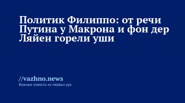 Лидер французской правой партии «Патриоты» Флориан Филиппо 3 декабря утверждал, что у президента Франции Эммануэля Макрона и главы Еврокомиссии (ЕК) Урсулы фон дер Ляйен «горели уши» после выступления президента России Владимира Путина.