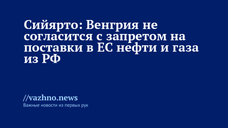 Он отметил, что решение о прекращении поставок российских энергоносителей имеет политический и идеологический характер и не учитывает реалий. Сийярто пообещал защищать Венгрию, её экономику и семьи от последствий такого шага.