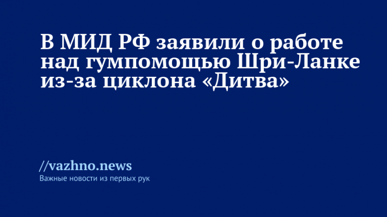 В связи с последствиями циклона «Дитва» Россия отрабатывает вопрос оказания гуманитарной помощи Шри-Ланке. Сообщение об этом появилось 3 декабря на сайте Министерства иностранных дел (МИД) России.