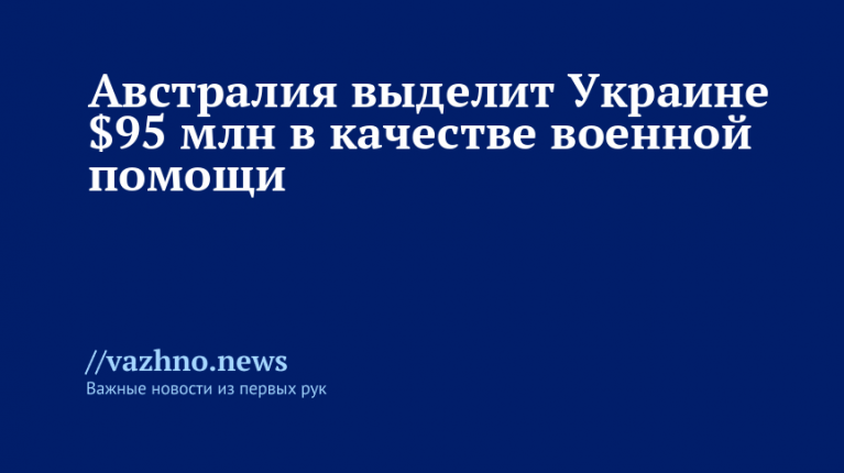 «Австралия предоставит Украине дополнительную военную помощь в размере $95 млн», — говорится в материале.
