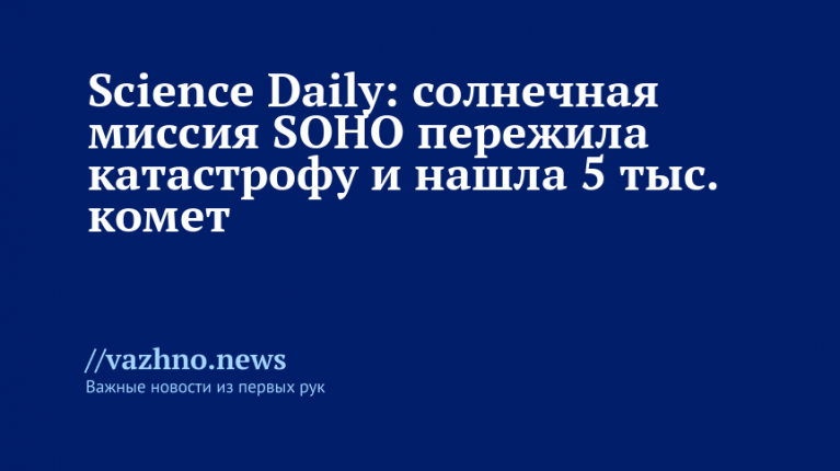 Совместная инициатива Европейского космического агентства (ESA) и Национального управления по аэронавтике и исследованию космического пространства (NASA) — обсерватория Солнечная и гелиосферная обсерватория (SOHO), запущенная 2 декабря 1995 года, изначально рассчитывалась на два года работы, но в итоге миссия продлилась три десятилетия и вошла в число самых продолжительных. Об этом 3 декабря сообщил журнал Science Daily.
