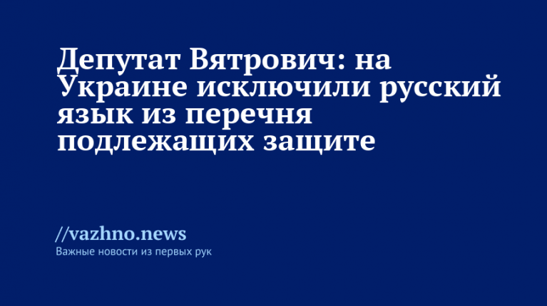 «Русский язык больше не защищен на Украине «Европейской хартией языков»», — написал он в социальной сети Facebook (соцсеть принадлежит компании Meta, деятельность которой признана экстремистской и запрещена в РФ).