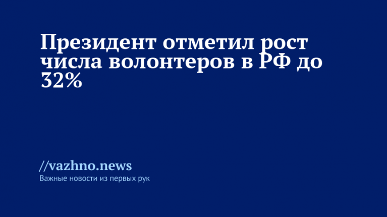 Количество людей, вовлеченных в волонтерскую деятельность в России, увеличилось с 10% до 32%, отметил Владимир Путин. По его же словам, после начала операции к помощи бойцам СВО и их семьям присоединились 630 тыс. человек.