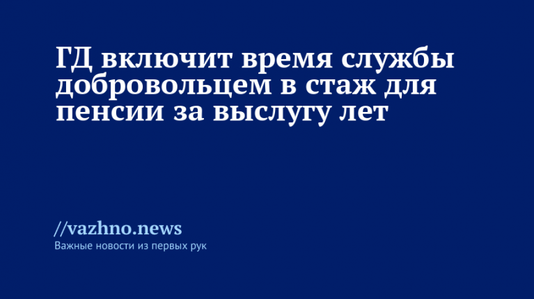 Госдума включит службу добровольцем в стаж для пенсии по выслуге