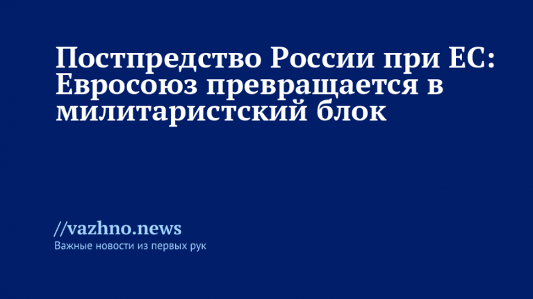 Постпредство РФ при ЕС: Евросоюз превращается в милитаристский блок