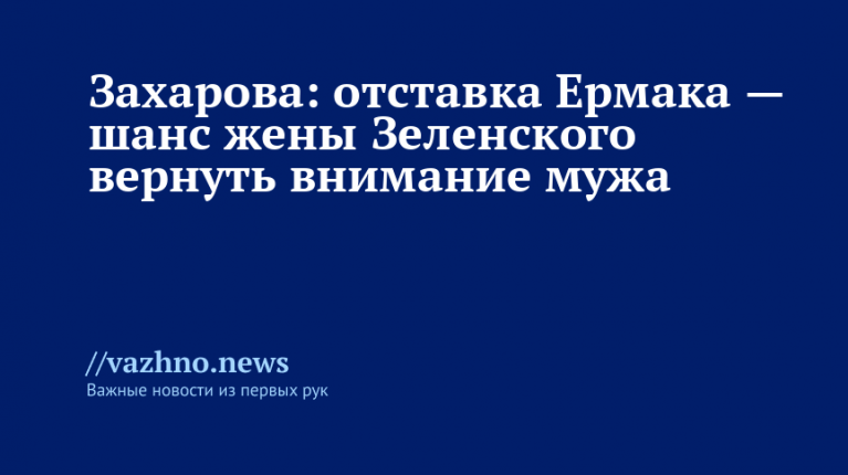 Захарова: уход Ермака — шанс жены Зеленского вернуть внимание мужа